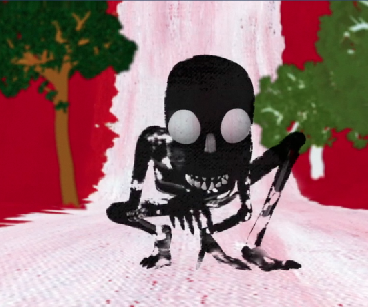 “The artwork that began this way of thinking about the theme of the exhibition was the animation Cannibal Story a collaboration between the painter and sculptor Yunkurra Billy Atkins and animator Ariel Sohan Hayes. This work, seen in the exhibition, represents the first time Martu elder Yunkurra Billy Atkins has ventured into animation and retells an ancient story as a startling digital animation that opens the door to the past for a new generation of audiences….”