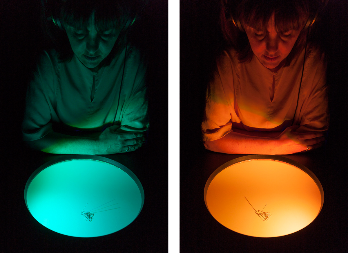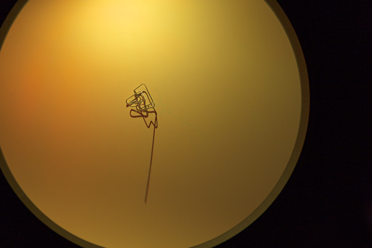 A series of small wire objects (many of them uninteresting) is concerned with extending sound art composition into visual form through the use of an ordinary sculptural object as a means of focusing audience attention. The artists explore how the simplest of objects may be transformed into something startling and mesmerising through the simultaneous use of sound, light and colour.