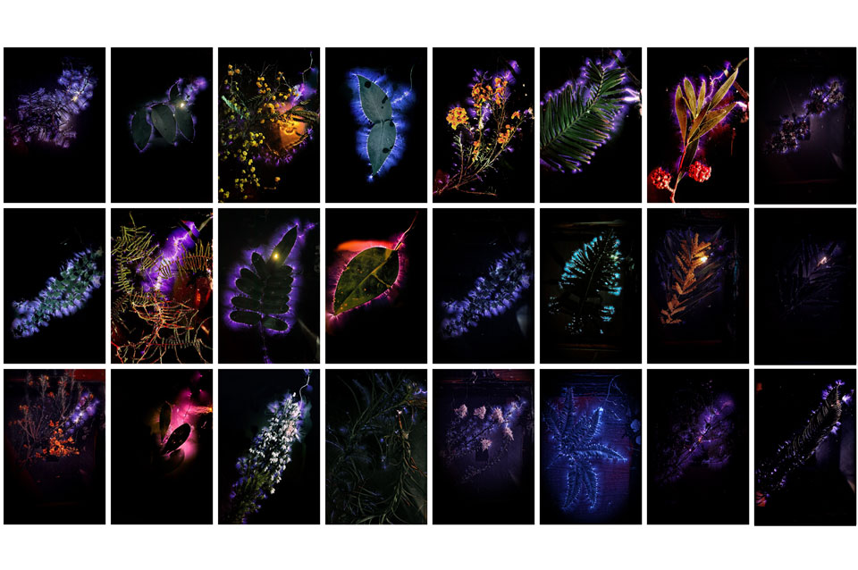 In Martin Walch’s Terra Antarctica, the result of a recent residency at the Mawson Station in Antarctica, he shows a keen interest in observing a rarely visited part of our planet. Leah Barclay’s Migration Patterns: From Freshwater to Saltwater brings this same observational rigour to explore an equally unfamiliar environment, our aqua-sphere. David Haines’ Slow Fast Mountains appeals to the evocative power of our olfactory senses, triggering lived and ancestral memories of our connections to the earth. In his companion work The Wollemi Kirlians, Haines has utilised a photographic technique pioneered by the Russian electrical engineer Semyon Kirlian and his wife Valentina to create otherworldly images of flora found in the Wollemi Wilderness.